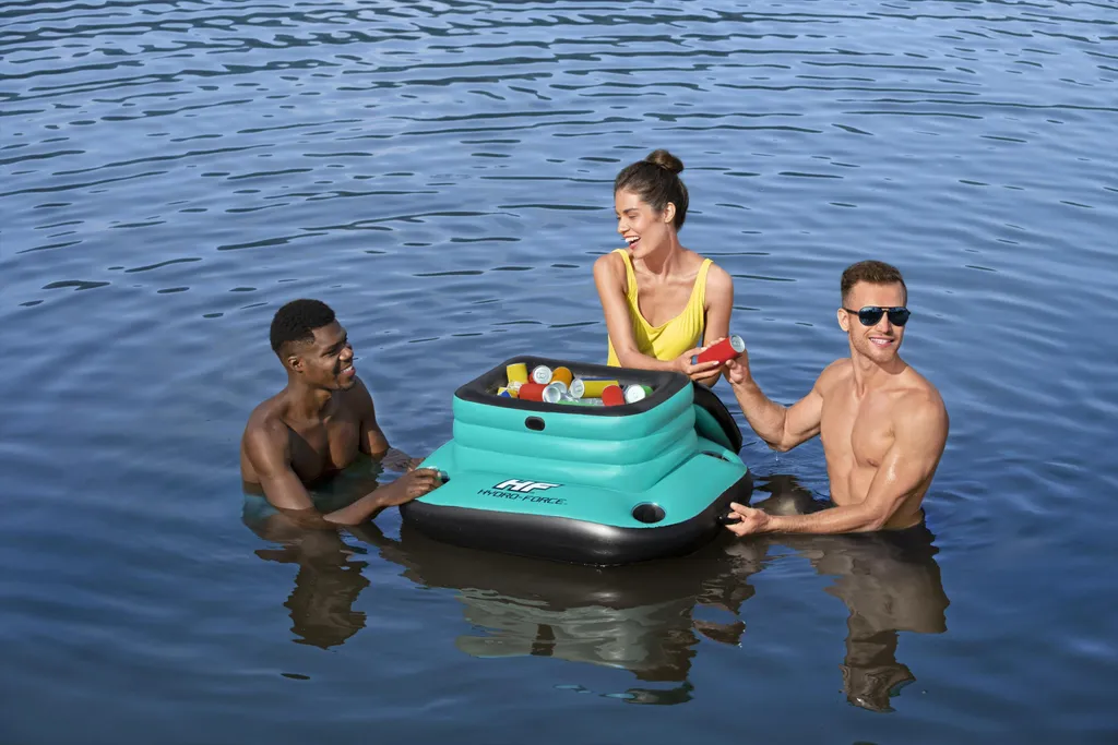 Diese aufblasbare Kühlbox kann hervorragend als zusätzliche Bar für Strand oder Pool dienen. Die wärmeisolierte Kühlbox mit 35,7 Liter Volumen hält Ihre Getränke den ganzen Tag lang gut gekühlt. Vier integrierte Getränkehalter dienen als sichere Aufbewahrungsmöglichkeit für bereits geöffnete Getränke. Die Griffe ermöglichen einen einfachen Transport und sind für jede Situation bestens gerüstet.