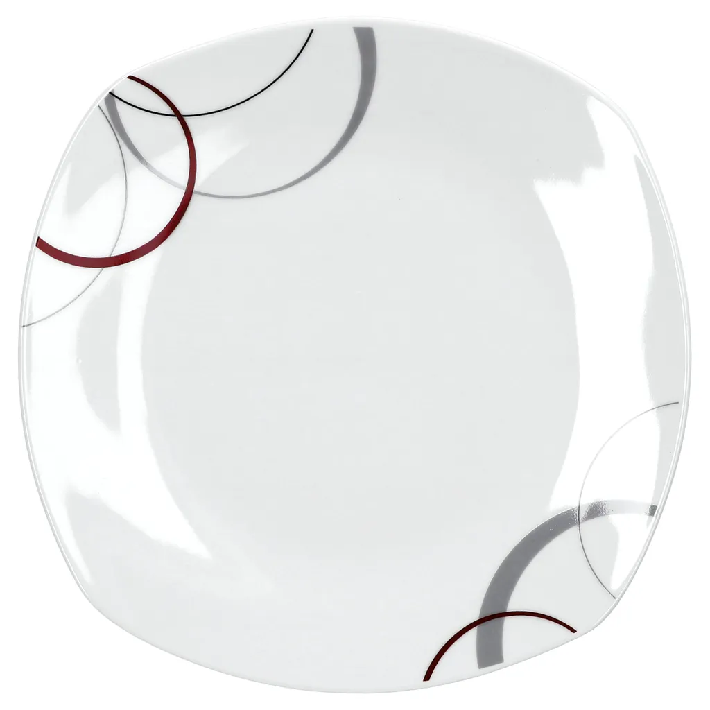 in den Farben grau und dunkelrot. Bei den Tellern ist diesesNachbildung am Rand und bei den Tassen, etc.