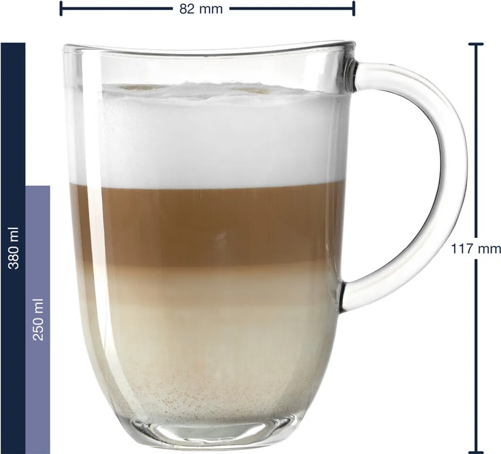 Tolle Macchiato-Tasse im mediterranen Design. Dank dem ausgeklügelten Design sind diese stapelbar und auch Mikrowellengeeignet. Zur Reinigung kann das Glas gern in die Spülmaschine. Bis zu 100°C Hitzebeständig.