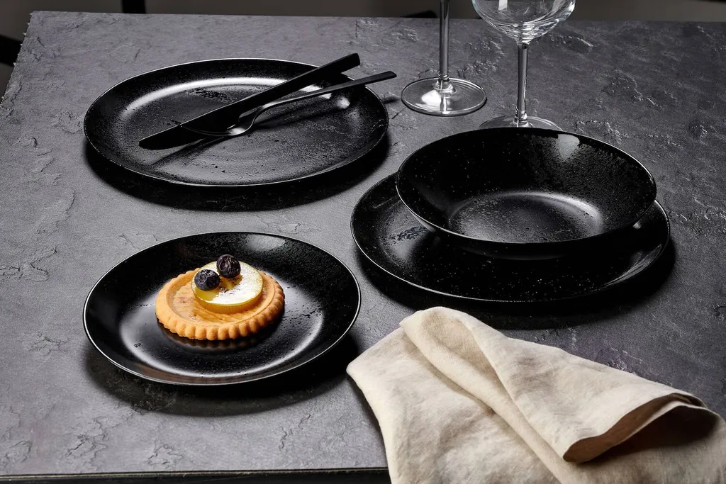 CreaTable 22978 Kombiservice Uno BLACK Für 4 Personen, Steinzeug, Schwarz (1 Set, 16-teilig)