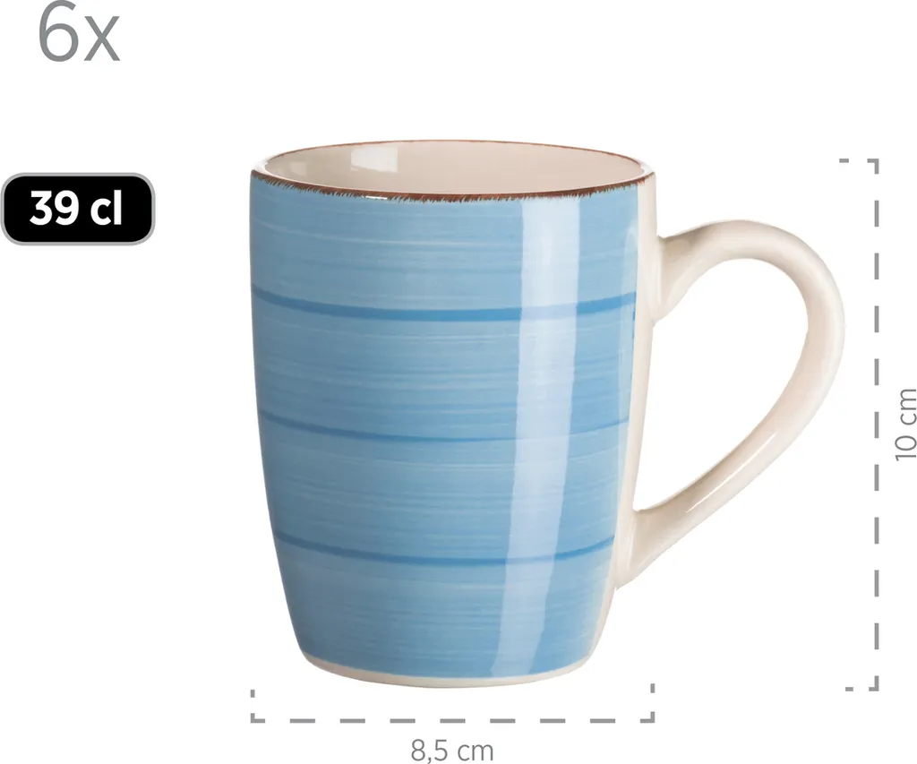- ‚Dieses Frühstücksset besteht aus 6 großen Kaffeetassen (390 ml), 6 Müslischalen und 6 Dessert-Tellern in dunklem Blau. Gerne wird es auch als modernes Kaffeeservice eingesetzt