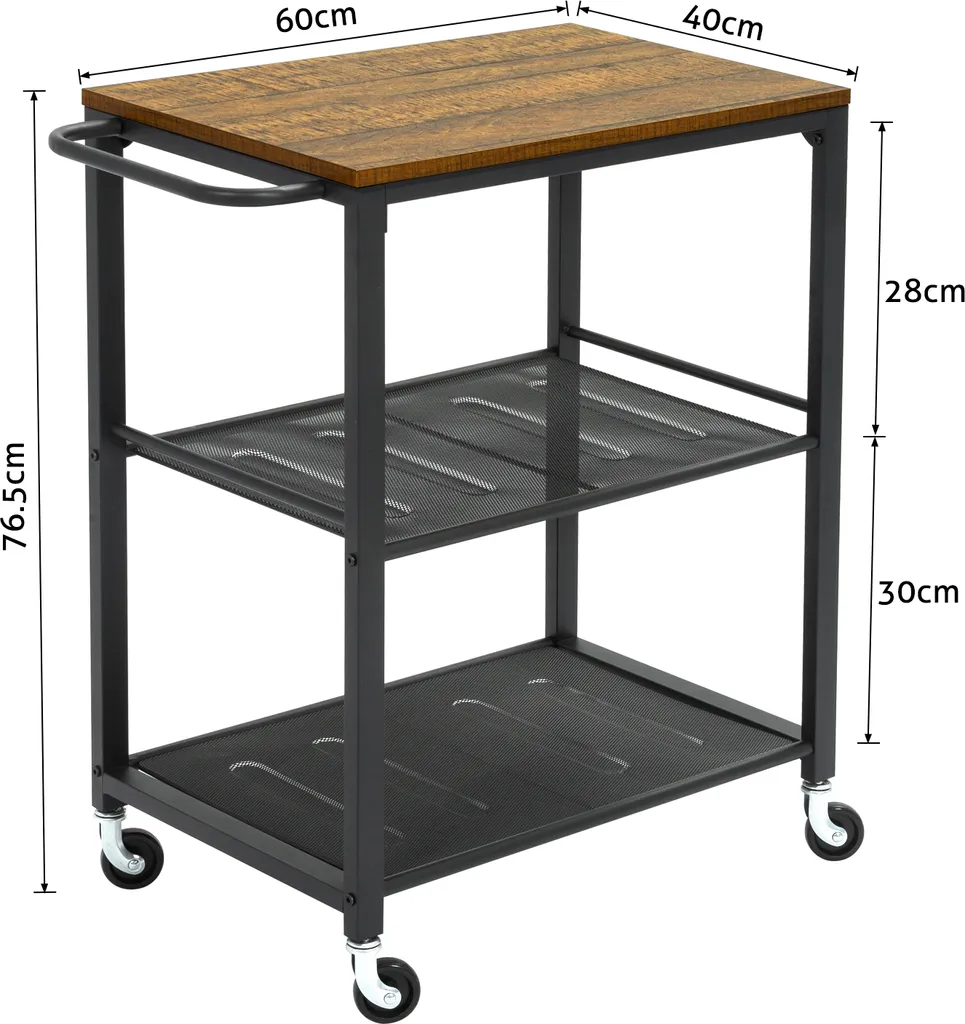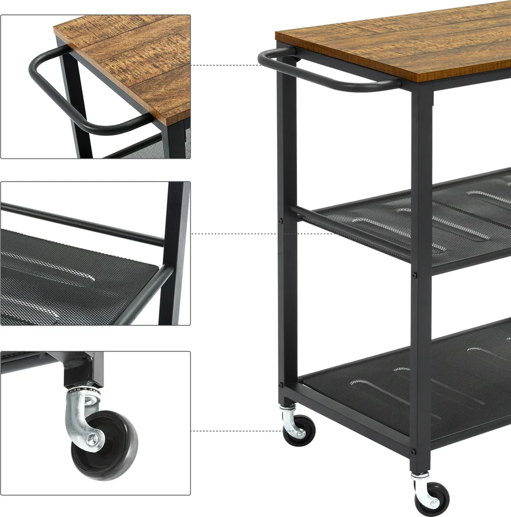 - Praktisch und Multifunctional: Wenn Sie Ihre Freunde und Familie zu einem Abendessen eingeladen haben, Ihr Tisch jedoch zu klein ist, um darauf all Ihre Köstlichkeiten abzustellen, dann greifen Sie auf diesen Küchenwagen in romantischem Vintage-Braun und elegantem Schwarz zurück.
