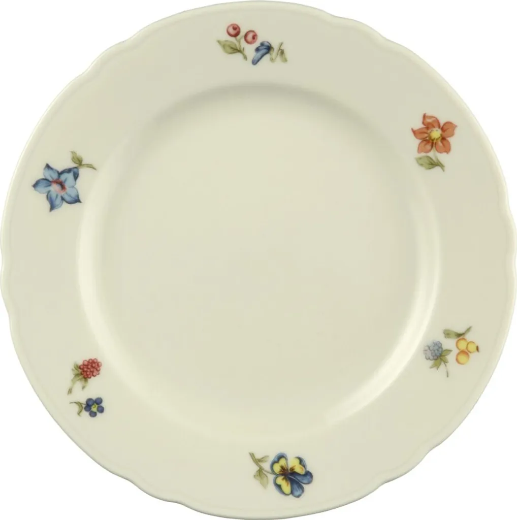 Die Kollektion Marie-Luise von Seltmann Weiden bringt klassische Porzellanformen mit geschwungenen Linien auf Ihre Tafel und zeichnet sich durch einen angenehm warmen Elfenbeinfarbton aus. Das fröhlicheNachbildung schmückt das Porzellan mit hübschen Blumen-, Blüten- und Beerenmotiven in Blau, Rot, Violett und Gelb.