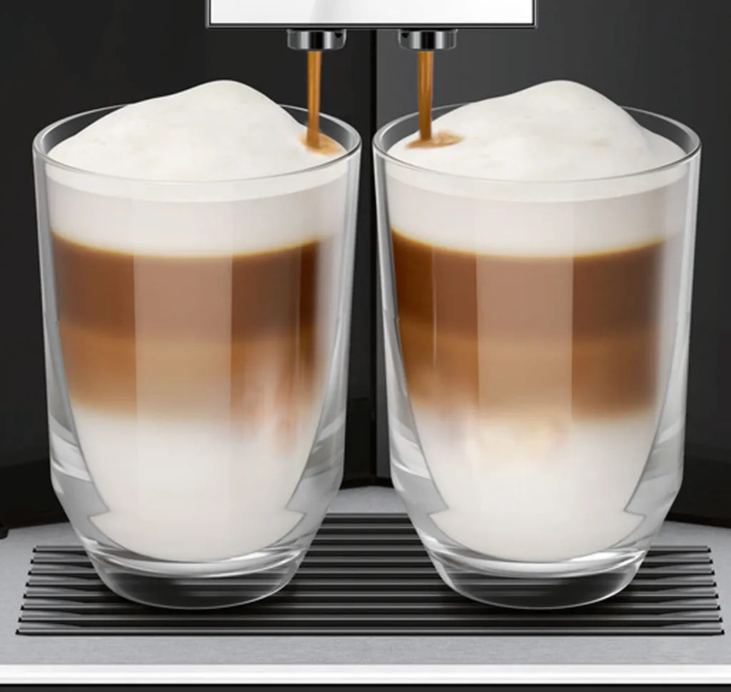 Ob starker Espresso, cremiger Cappuccino, Latte Macchiato oder Wiener Melange: Per Knopfdruck bereiten Sie jetzt zwei Tassen jeder Spezialität zu. Ihr Kaffeevollautomat nimmt automatisch alle Einstellungen vor und bereitet zwei Getränke gleichzeitig für Sie und Ihre Gäste zu.
