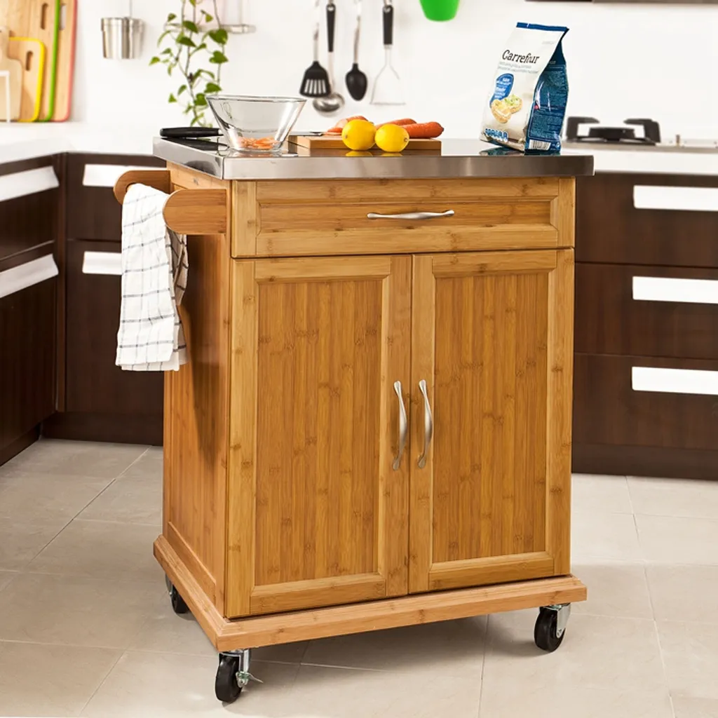 Ausgestattet ist dieser praktische Küchenwagen mit einer geschlossenen Schublade, einem geschlossenem Geschirrschrank indem Sie viele Utensilien verstauen können und einem Handtuchhalter.