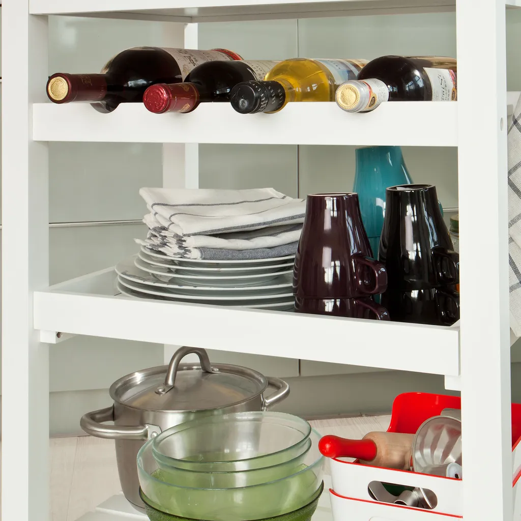 Der Küchenwagen hat vier große, stabile Gummirollen, auf dem sich der Küchenwagen auf jeder Oberfläche leicht verschieben lässt.
