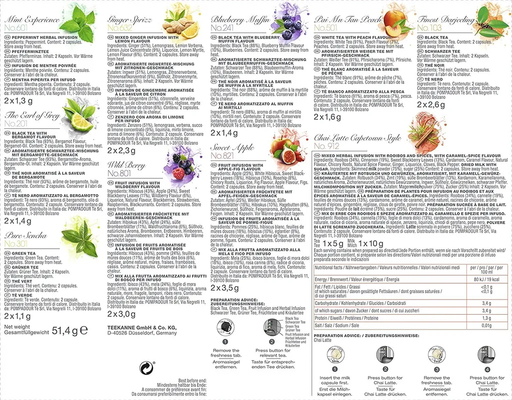 Teekapselmaschine inkl. 1 Wasserlter und 2 Reinigungskapseln sowie 1 Selection Box mit 20 Teekapseln