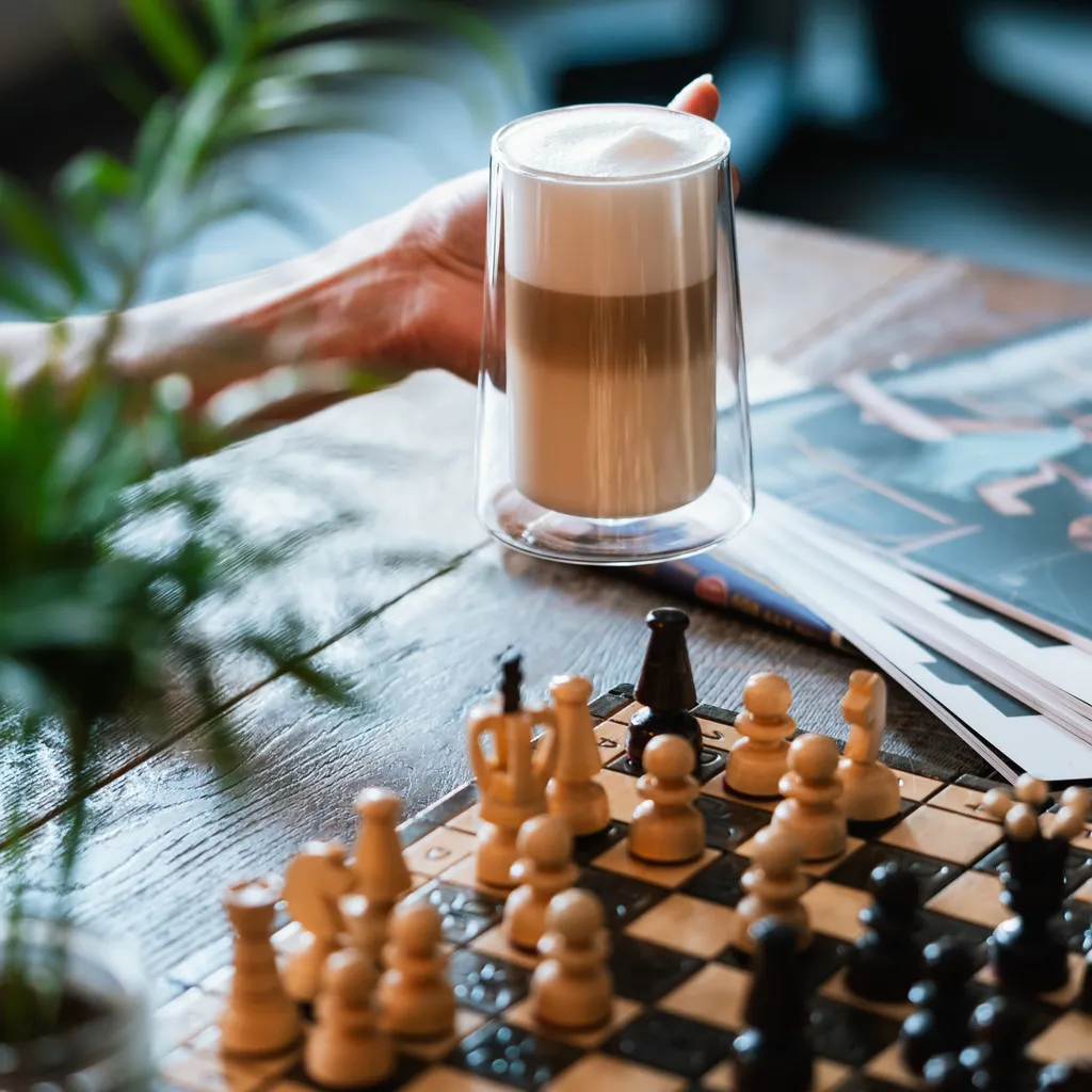 Die Glasgefäße haben einen doppelten Boden und doppelte Wände. Dank diesem Design sehen die mit dem Getränk gefüllten Gläser nicht nur interessant aus, sondern halten auch die Temperatur länger.