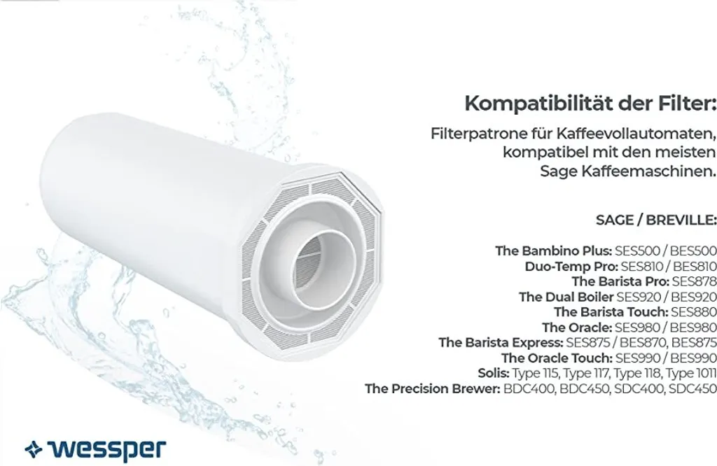 6 x WESSPER AQUASAGO FILTER FÜR SAGE EXPRESSOR – ERSATZ SES008 BES008
